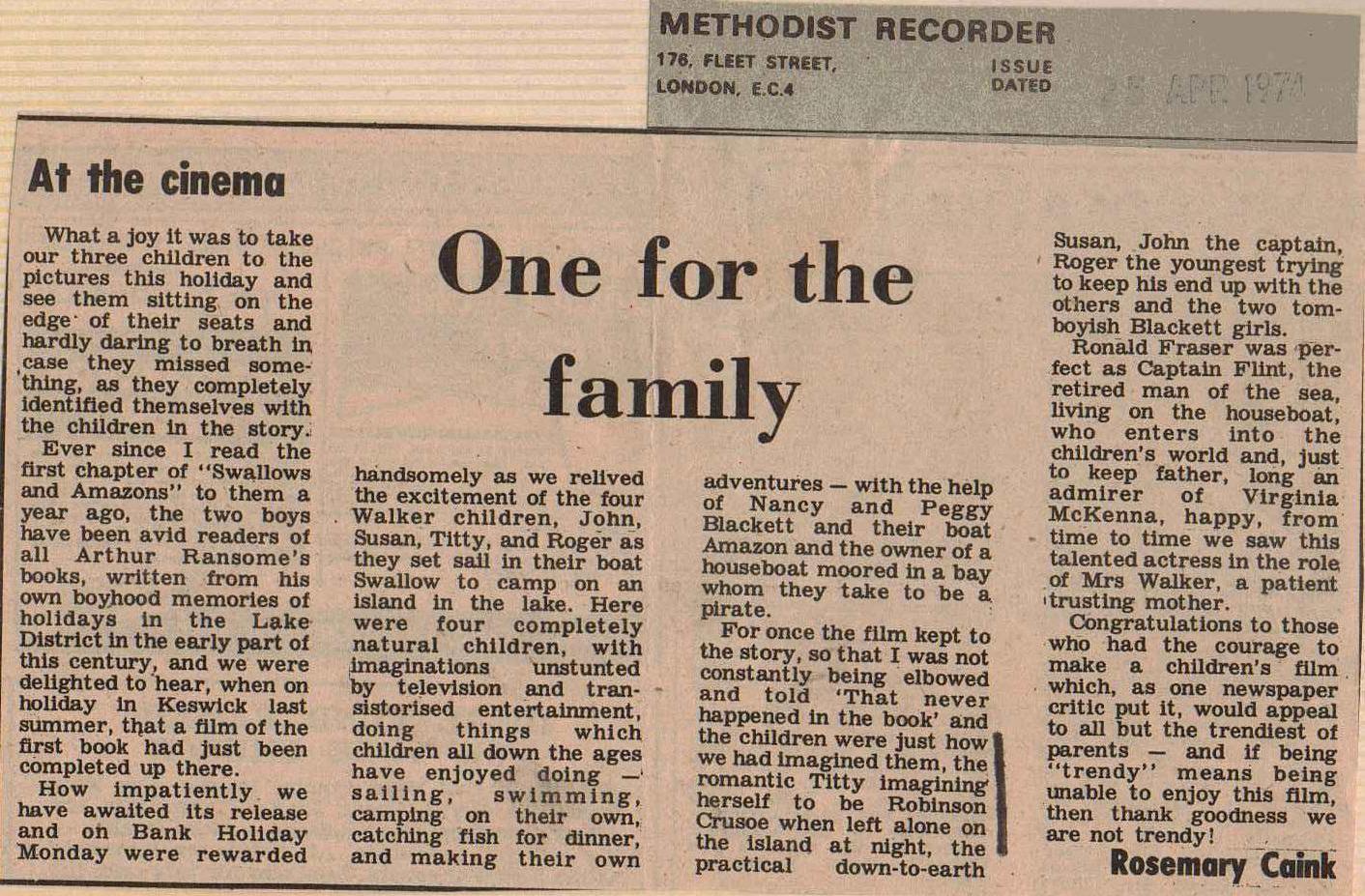 However, Russell Davies of The Observer, another jazz musician who now presents Brain of Britain on BBC Radio 4, saw that the film of Swallows and Amazons had niche. (If you click on the article it will enlarge).