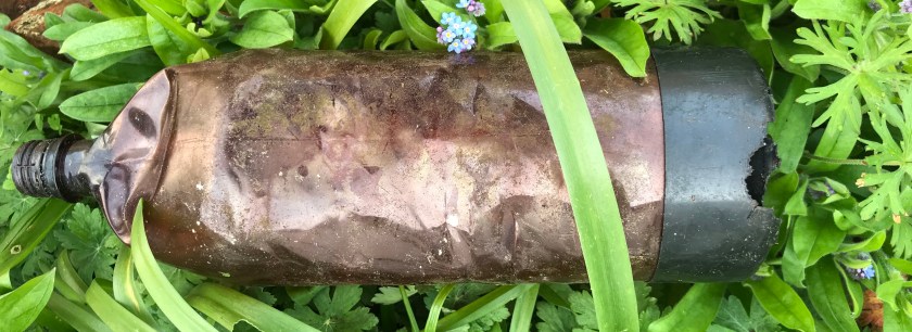 I’m am on the phone to the police as I write, reporting another stolen item. A sodden, empty jewellery box looked up at me from a ditch this evening. It was in plain view of the road. I had just collected one bucket of bottles, one of empty cans and one of general rubbish along with a road traffic bollard, the back shelf of an estate car and a sodden carpet. This took 90 minutes of concerted effort. Retrieving rubbish from an overgrown ditch is tricky. Some was hanging from the trees. However, this is the New Forest National Park. It’s important to persevere. One unopened tin of larger was dated 1990. It must have been lying there for thirty years. An odd conical can of UHT milk had the same ring pull. I’ve no idea of the date. It is made of both plastic and tin.