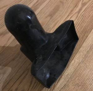 It’s been a wet day and I’m too busy to do much but collect 16 pieces of litter as I walk along the river to Book Club. I find a rubber tow-bar cover, which I present to my friend as a hostess gift. She says she is thrilled receive what she describes as a knob guard. I entertain the other members with tales from my litter-picking. Two of them offer to join me. Total for the day about 5 minutes.