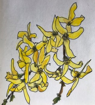 Winter Jasmine – ink and watercolour sketch by Sophie Neville