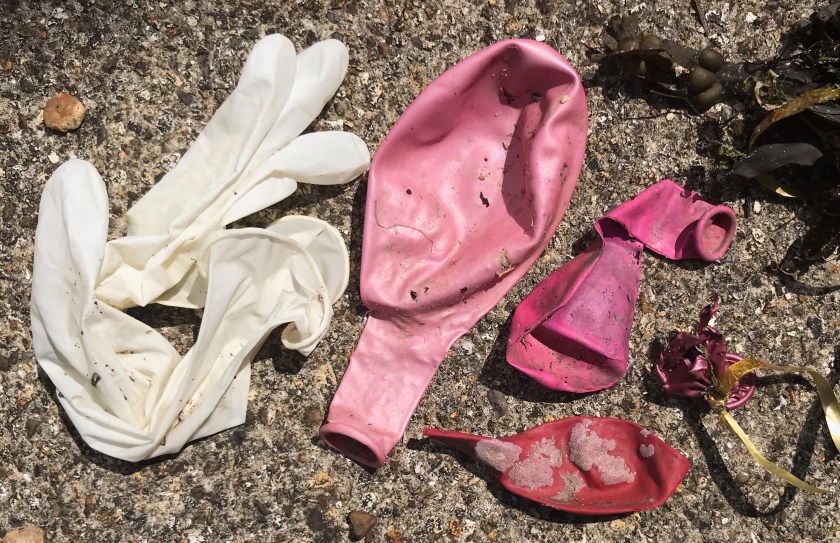Previous Image Next Image Rubber balloons washed up on UK beaches Sadly, it is not unusual to find balloons washed up along the coast. Helium ballons are washed up almost every day