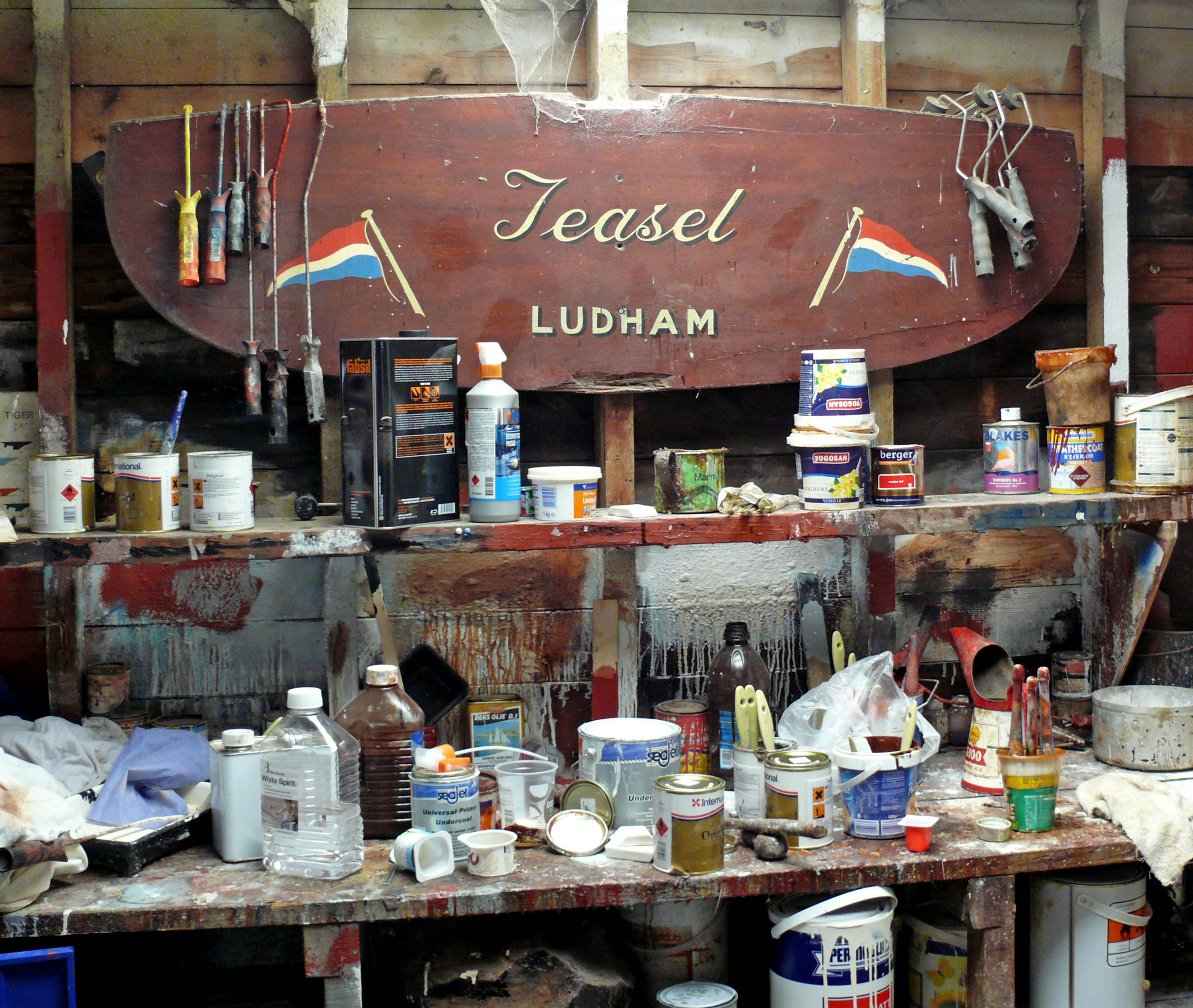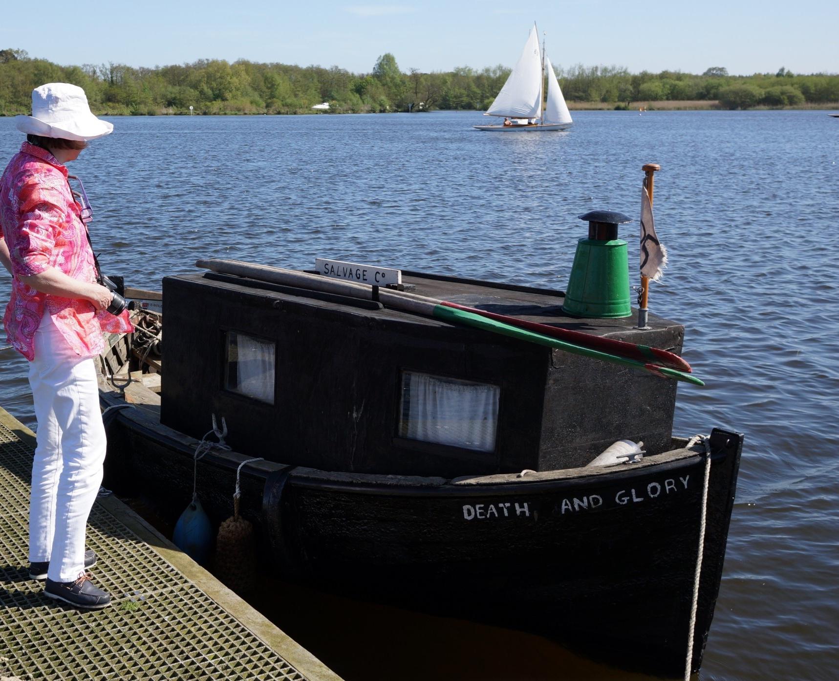 At a forum organised after my talk, Pat Simpson from Stalham Yacht Services explained how he found one of the stars of the series – an old lifeboat suitable to play the Death and Glory. She had been brought from where she is kept at Belaugh for the evening. You can see more photographs of her in the previous blog post here.