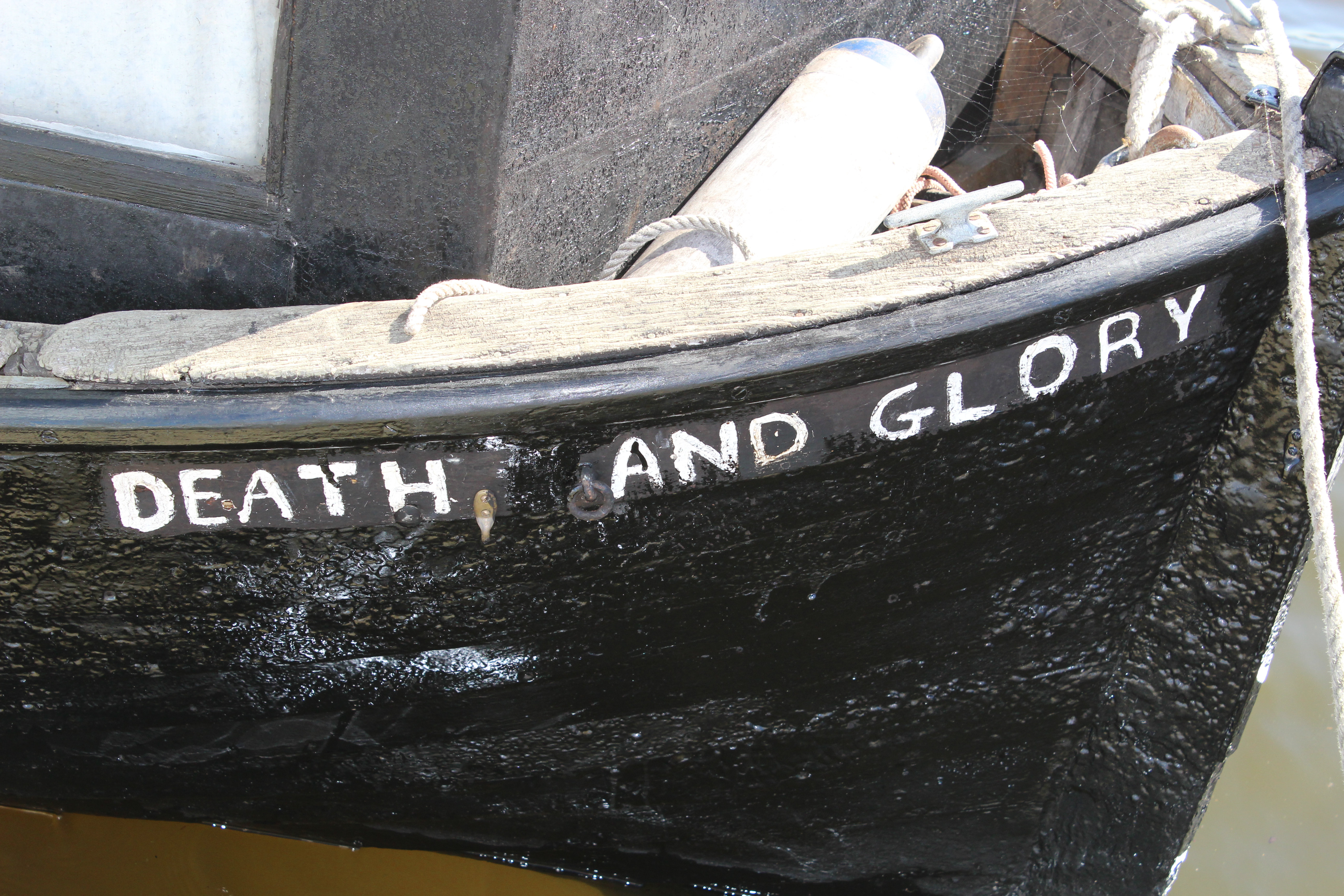 I was shown a wonderful black and white photograph of the vessel used to play the Cachalot. She was skippered in the series by the film actor Sam Kelly in the role of the unnamed pike fishermen who the Death and Glory boys simply called ‘Sir’. She is seen here with John Boswell, her real owner who has sadly passed away. His son, the artist Patrick Boswell, brought along an album of behind-the-scenes photos.