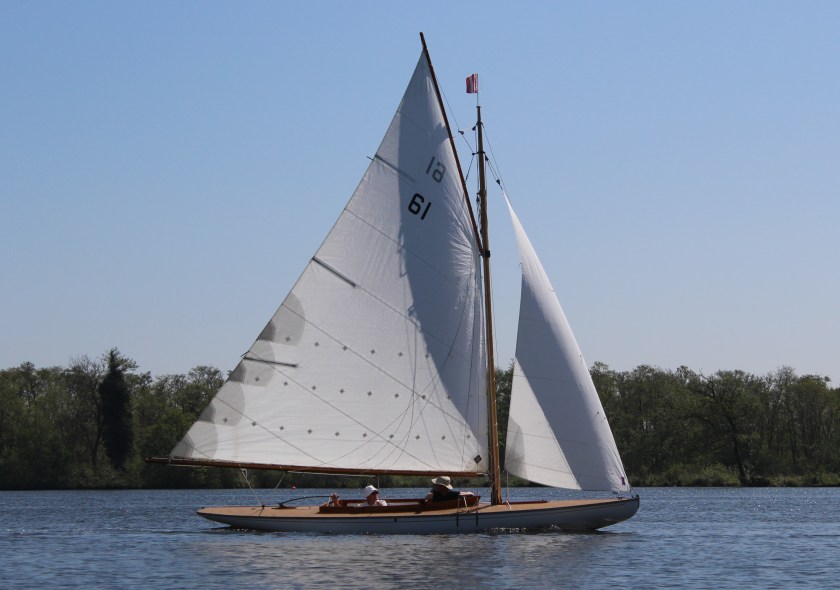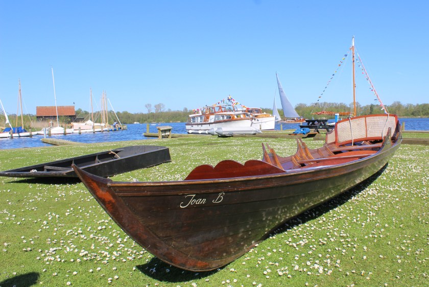 I was invited to talk about making the BBC TV classic serial ‘Coot Club’ and ‘The Big Six’ at the Norfolk Broads Yacht Club to help celebrate their 80th Anniversary. Titmouse, then 1930s dinghy owned by Hunter’s Yard had been brought down from Ludham for the occasion. The bonus was that I was able to go sailing in one of the classic boats gathered at the club for their Open Day.
