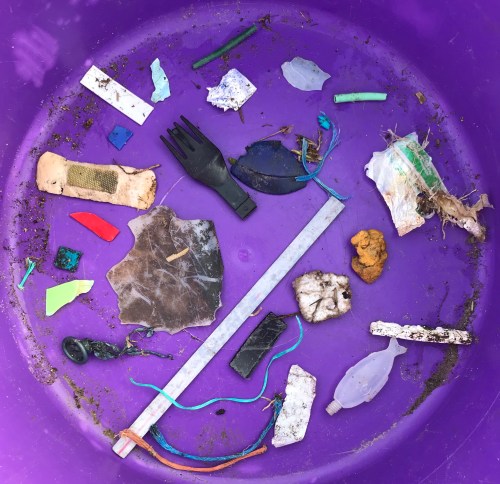 I spend the evening walking along the Solent shore, alone with the dog, the sea birds and micro plastics. I photograph my catch before loading the hard stuff. It is clear that some pieces, including a balloon, must have already passed through the digestive tract of an animal, possibly a forest pony.
