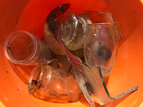 Are glass bottles being flung out of moving vehicles? I spend a total of 40 minutes collecting and sorting as refuse is collected first thing tomorrow.