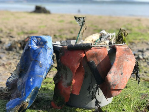 I squeeze my car into a friend’s driveway and take my buckets down to the shore. It is like a rubbish dump. Every time I pull up a section of plastic, sand flies rise. I stuff as much as I can into a bag and gather bottles, plastic straws, fishing net, a yachting cap and other flotsam, and depart with as much as I can carry. The last thing I find is a fairy liquid bottle that must be 30 years old. It’s suddenly all too much. 40 minutes and I have hardly made any impression on the filth. I need to return with friends. As I write this, a neighbour messages me to say she’ll join me. If we work together it’ll be more amusing.