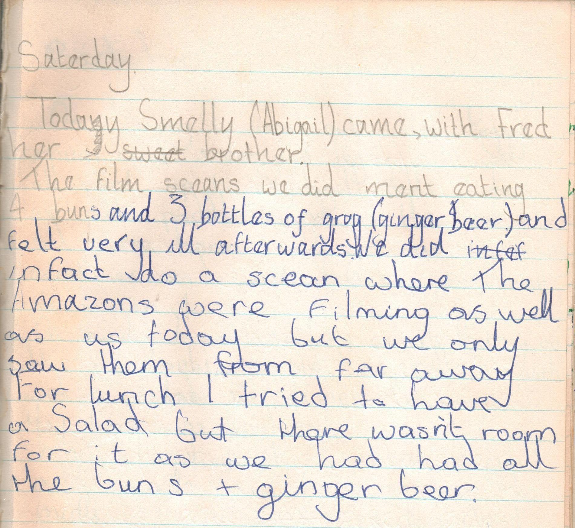 Again we have to rely on The Mate Susan for details. Surely she was modeled on Ransome’s own efficient wife Evgenia? In this extract from her diary Suzanna mentions that Richard Pilbrow’s two children came to watch the filming. She knew Abigail from London.