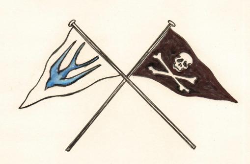 The story opens when the four elder Walker children are given permission to sail off to camp on an island by their father who is absent, in Malta with the Navy, and sends the famous telegram: BETTER DROWNED THAN DUFFERS IF NOT DUFFERS WONT DROWN (with no apostrophe).