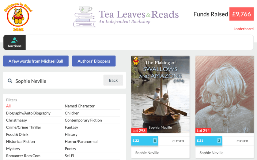 From August 2025 onwards, I helped Children in Read raise nearly £10,000 for BBC Children in Read by taking part in an online charity book auction, which was fun and involved dialogue with many amazing writers.
