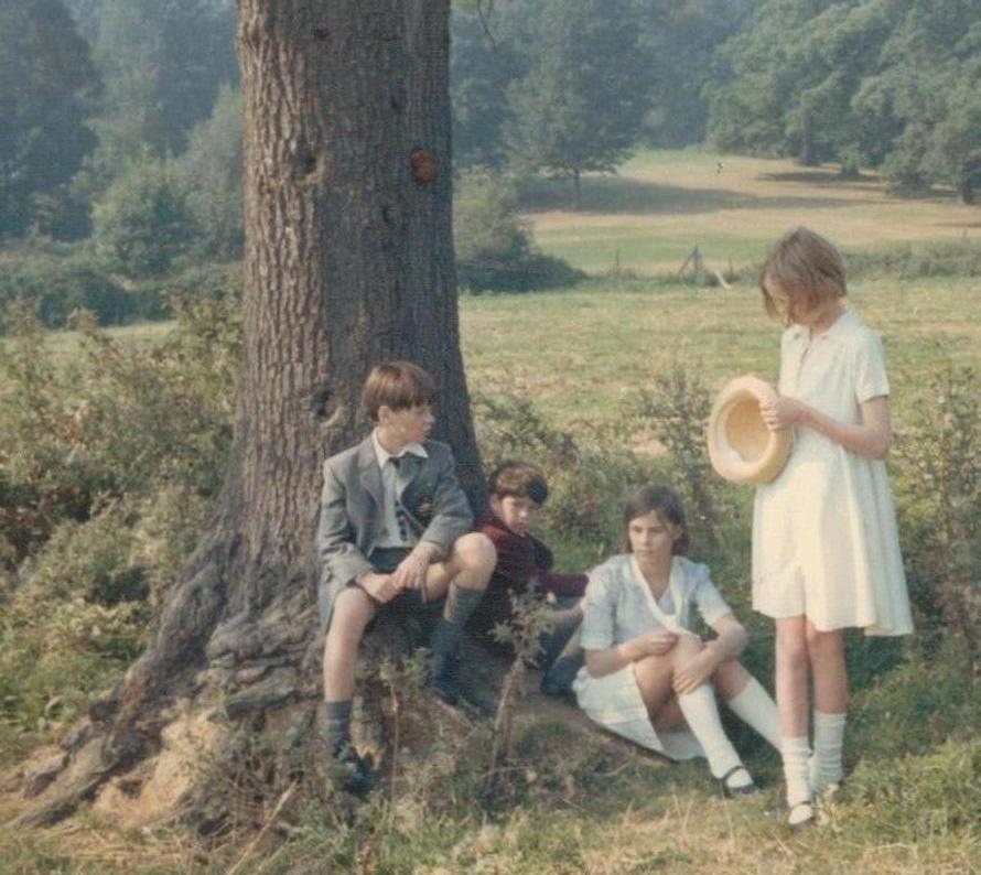 Simon West, Stephen Grendon, Suzanna Hamilton and Sophie Neville as the Walker children dressed as they arrived at Holly Howe at the start of their holiday in the Lake District ~ photo: Daphne Neville