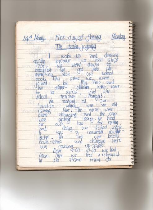 notes to the text ~ Mrs Price was the lady who owned and ran our guest house. Our tutor, Margaret Causey, taught us in a converted red London double decker bus.I took note of my dialogue in the pages of my diary. Here it was supplementary to the script