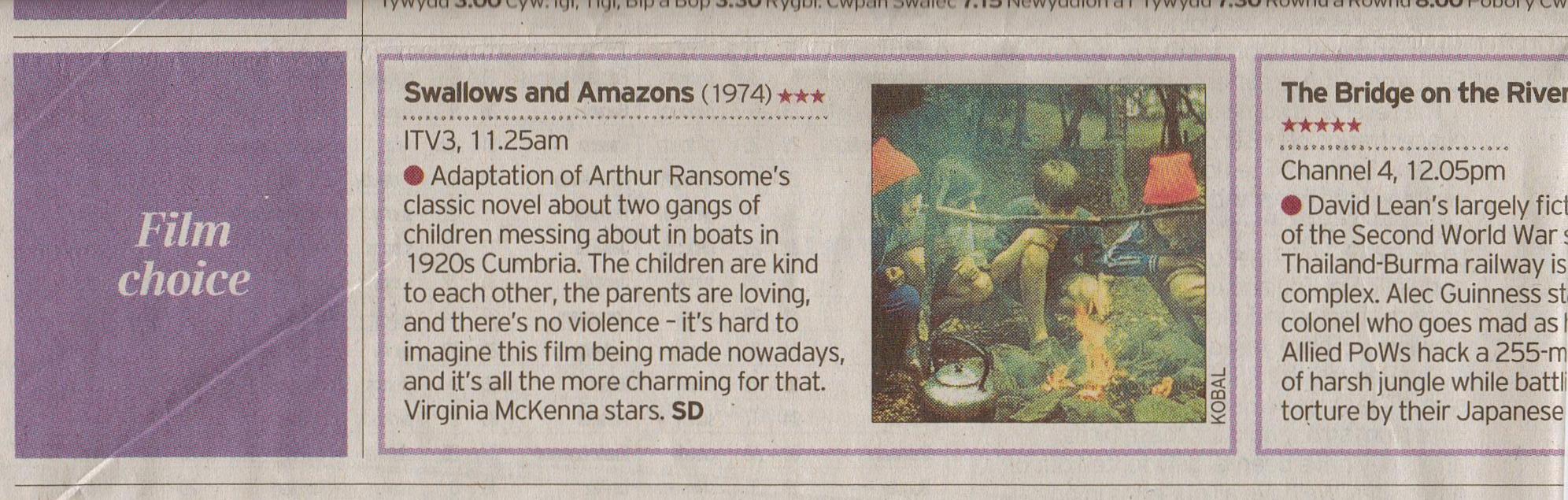 Swallows & Amazons (1974) was featured on CBBC TV’s Cinemaniacs now on BBC I-player.