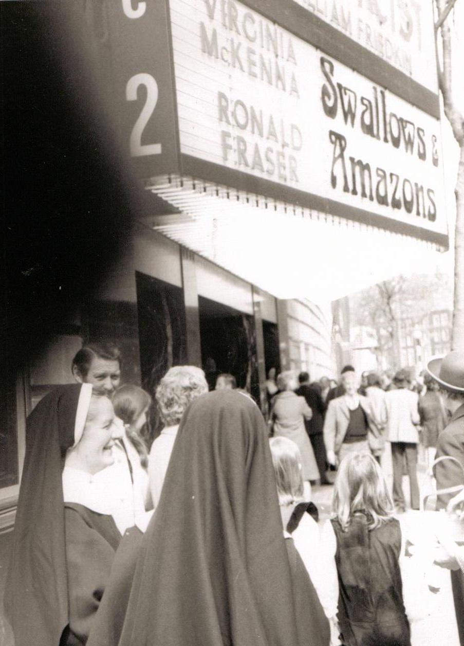 Outside the ABC in Shaftesbury Avenue at the premier of ‘Swallows & Amazons’ in 1974. The nuns were amused to find ‘The Exorcist’ was on at the same time.