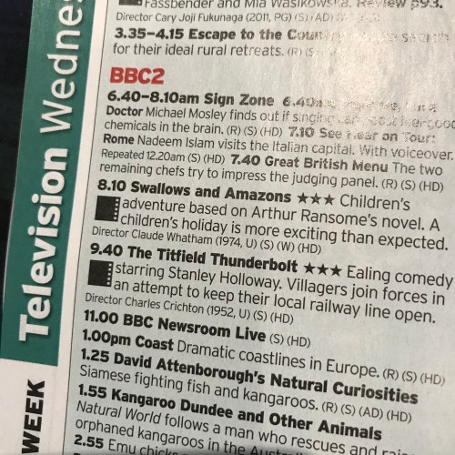 - No one asked if I could row a boat and yet Titty rows in three crucial scenes. It’s more difficult than you might think when you have a Panavision camera onboard or are effectively towing the camera boat. We now have a modern dinghy which we sail on the Solent, with a little more attention to safety.