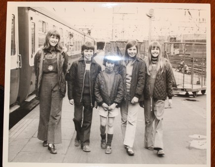 It was difficult to find decent clothes, that didn’t cost a fortune. There was a reason why dressmaking was so popular – we had to make our own garments. At the age of twelve I made a navy blue skirt for school so that it had a fashionably broad waist band. Flared dungarees were all the rage, worn with a stripy polo-neck or blouse with a large collar. Kit, Lesley and I all wore these, although sadly my brushed-cotton dungarees grew rather short during the filming.