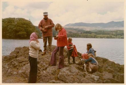 Ronald Fraser with Lesley Bennett and Kit Seymour on Peel Island, Coniston Water in 1973