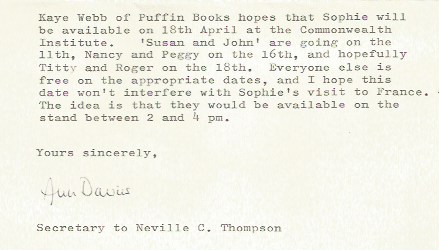 ‘I remember going to the Puffin Club exhibition in London around the time of the film release and some of the cast were there with one of the boats. There was a quiz about S & A and you could win a copy of the book – which I did! Sophie, were you there? And do you know if the boat was ‘Swallow’ or ‘Amazon’?’