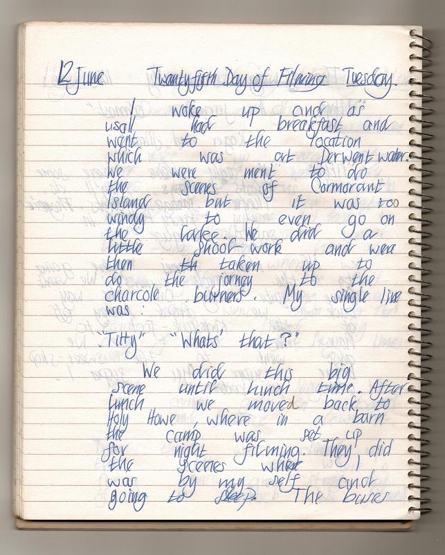 Although Titty was the one who always kept the ship’s log in Arthur Ransome’s stories, we children all kept journals during the filming as part of our school work. It was quite a task.