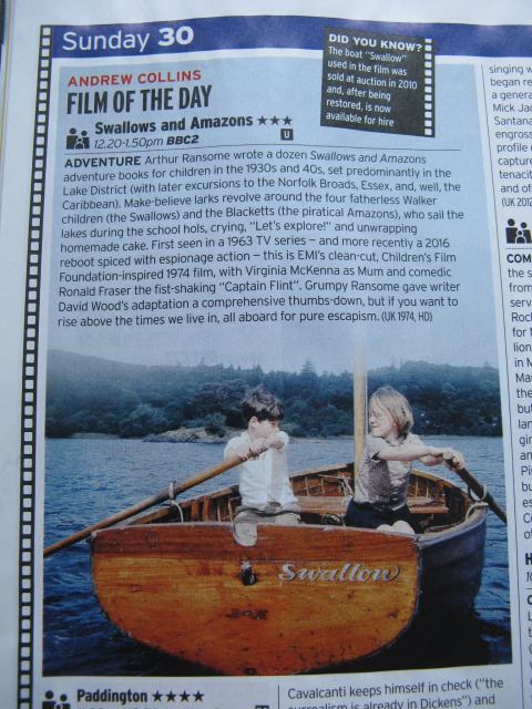 It was wonderful to see the feature film heralded as ‘Film of the Day’ but Hilary Weston of The Arthur Ransome Society pointed out that there are a few errors in the write up.