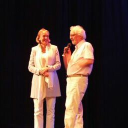 Sophie Neville on stage with Peter Willis, President of the Nancy Blackett Trust