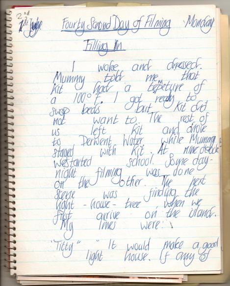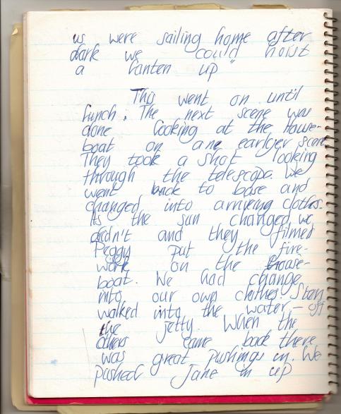 What made Terry’s job even more demanding than usual was that since we were all under the age of sixteen we still had to complete at least three hours schooling a day. I was only meant to spend three hours a day in front of the camera and leave at 5.00pm. This meant that, unlike Ronnie Fraser, we had to be collected from our red bus and taken over the water to our set at the last possible moment when the camera and crew were ready to roll. We had no mobile phones, only Motorollas.