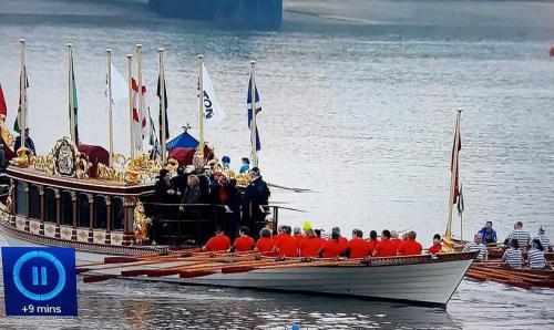 On the crew of the Gloriana in the Boat Race Flotilla in March featured on BBC Television