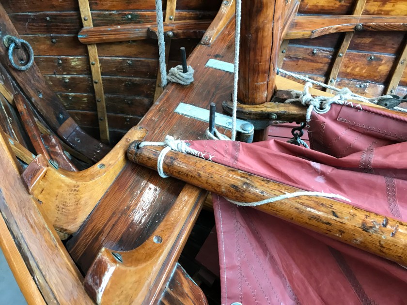 Paul Thomas, of the Arthur Ransome Group, explained that Swallow and Amazon are standing lugsail dinghies, rather the balanced lugsails as I had been told. “Swallow’s keel was designed for sailing in shallow estuaries and grounding on shifting shoals with sails tanned to protect them from rot and sunshine.”