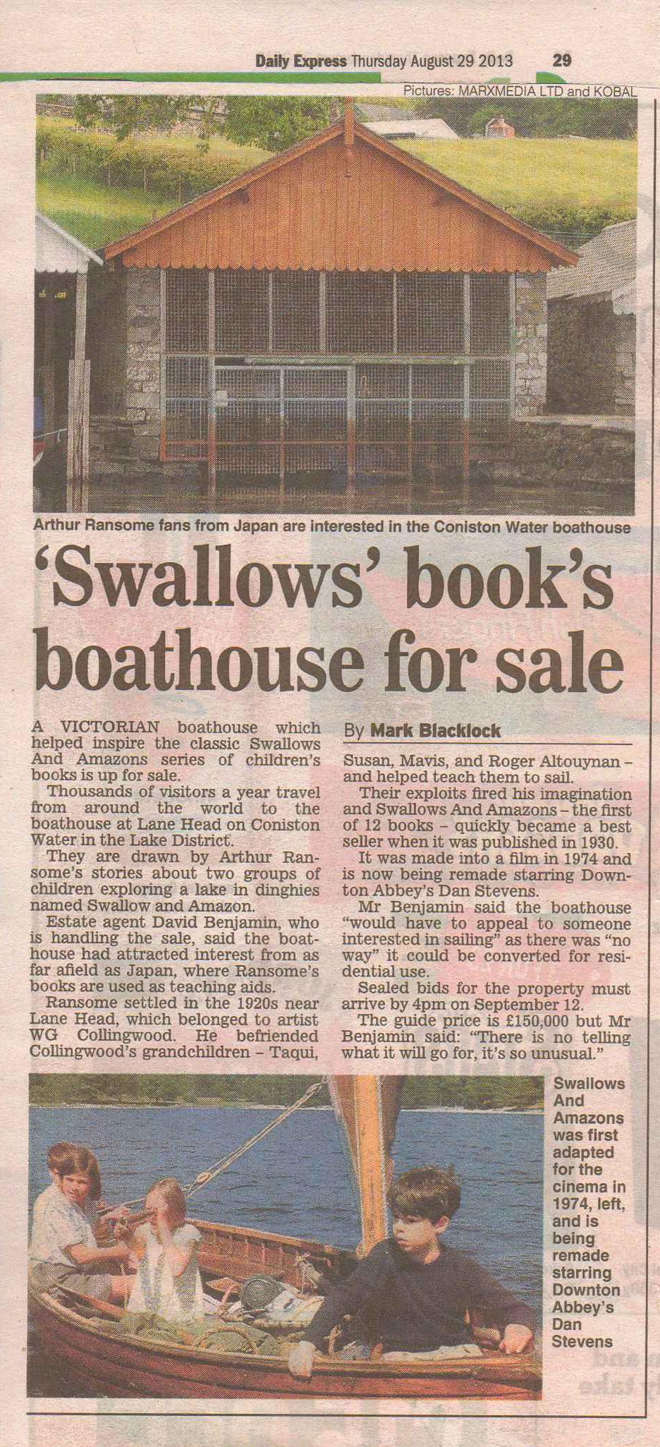 I arrived back from holiday to find that, following the ITV report, daily newspapers in the United Kingdom have been writing extensively about a certain inspirational boathouse on Coniston Water that is currently for sale.