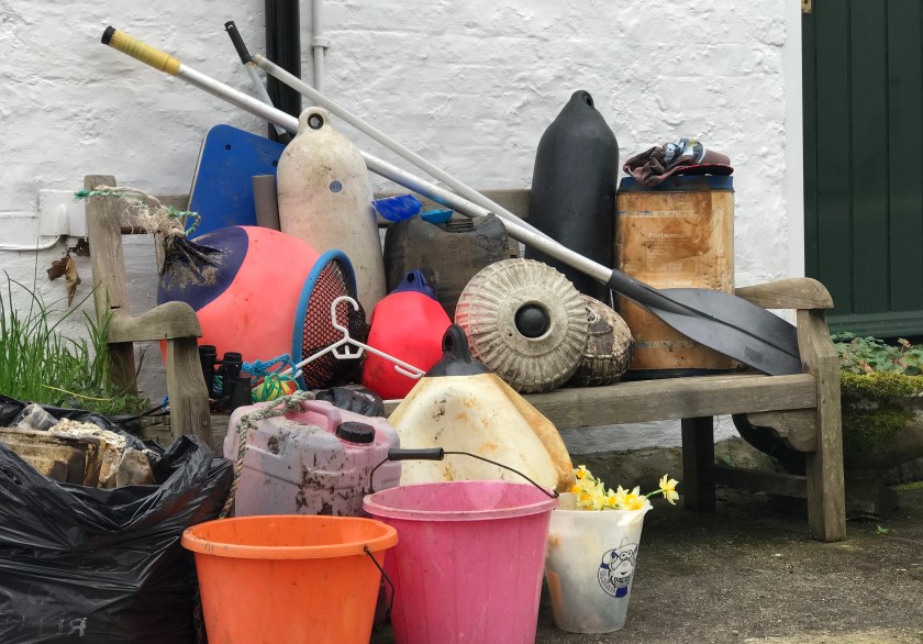 I squeeze my car into a friend’s driveway and take my buckets down to the shore. It is like a rubbish dump. Every time I pull up a section of plastic, sand flies rise. I stuff as much as I can into a bag and gather bottles, plastic straws, fishing net, a yachting cap and other flotsam, and depart with as much as I can carry. The last thing I find is a fairy liquid bottle that must be 30 years old. It’s suddenly all too much. 40 minutes and I have hardly made any impression on the filth. I need to return with friends. As I write this, a neighbour messages me to say she’ll join me. If we work together it’ll be more amusing.