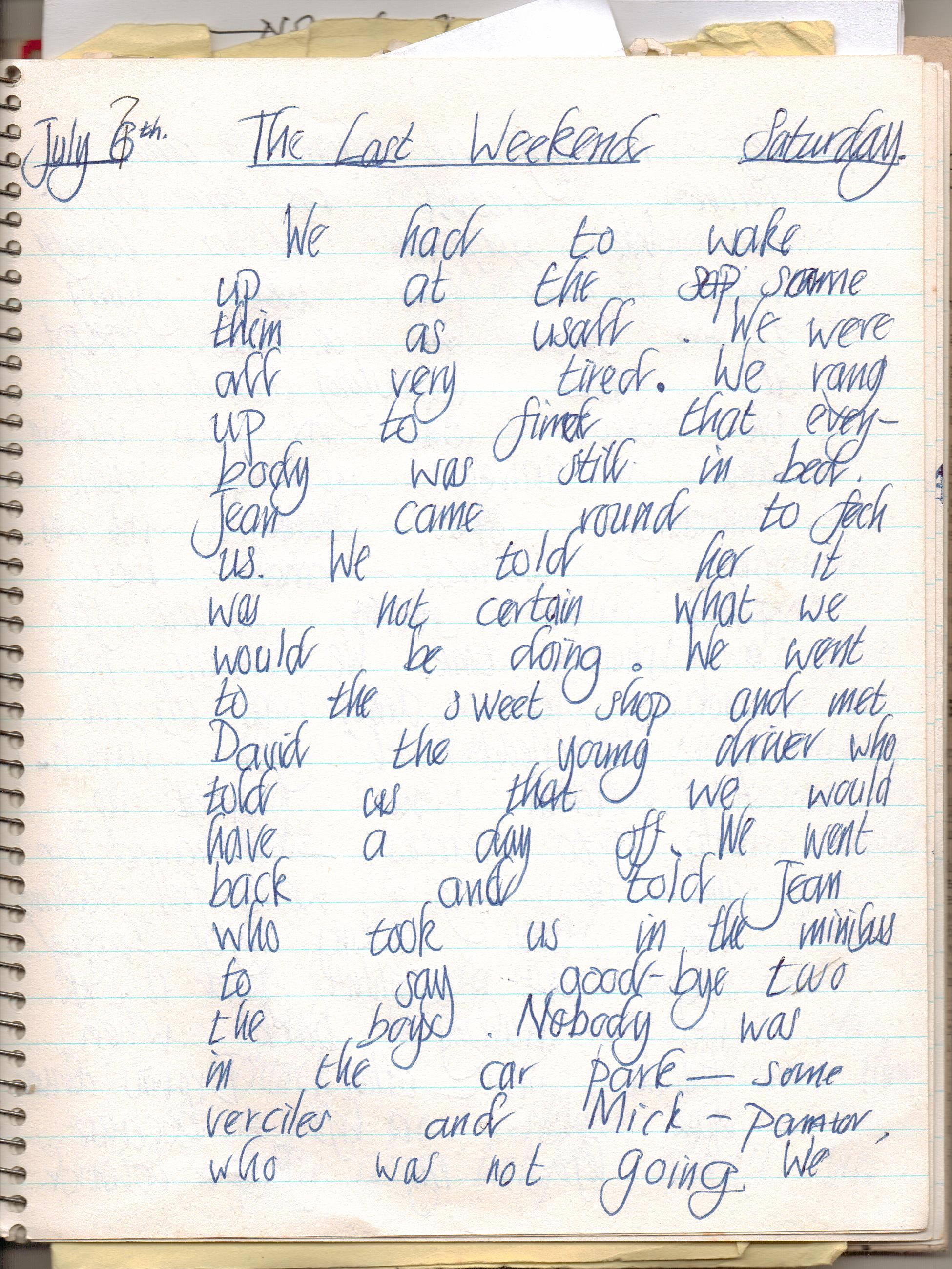 And what with all the nocturnal pushings-in, Graham Ford our production manager, had broken his ankle. Although we were up and about on the morning of 7th July, it became clear that the entire film crew were comatose after the wrap party held at the Langdale Chase Hotel. There was certainly no sign of the director. Since it was also raining, an unexpected day off from filming was called.