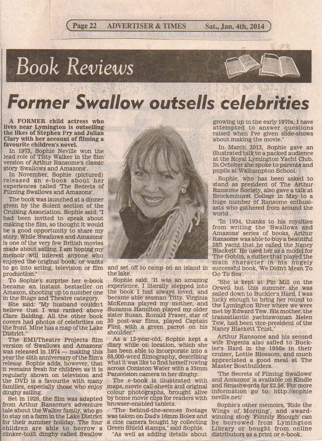 A review of ‘the Secrets of Filming Swallows & Amazons’ in Richard Kay’s column in the Daily Mail ~