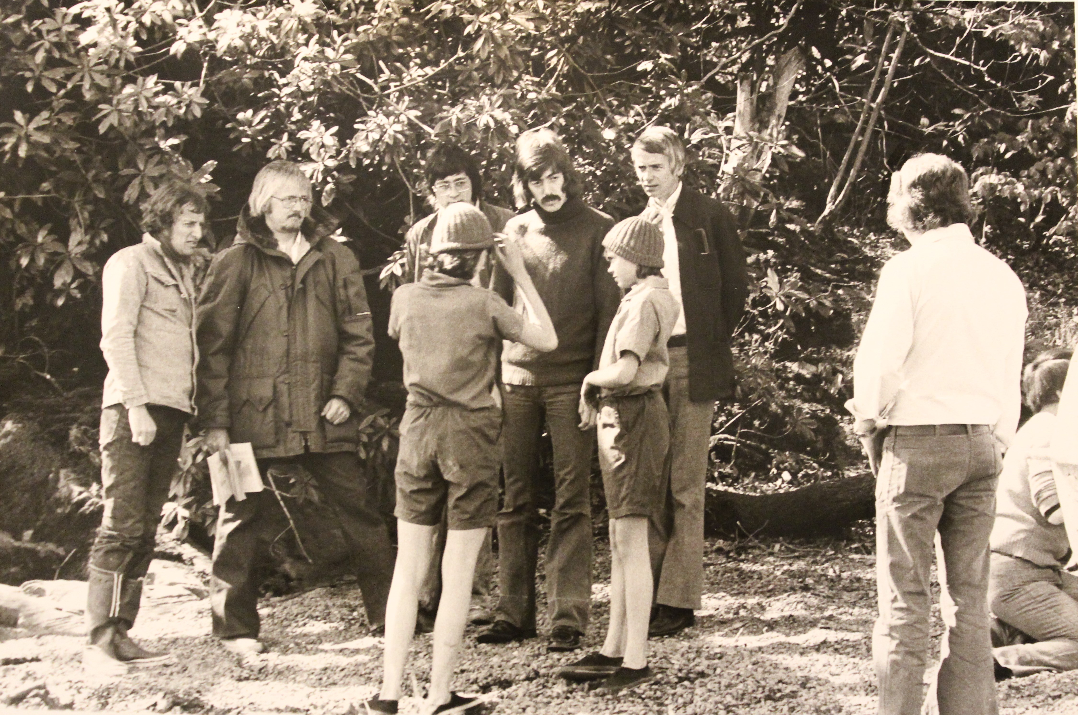 ~Director Claude Whatham, Producer Richard Pilbrow, 3rd Assistant Director Gareth Tandy, Make-up Artist Peter Robb-King, Hairdresser Ronnie Cogan and Associate Producer Neville Thompson with Kit Seymour and Lesley Bennett at Brown Howe on Coniston Water in May 1973 ~