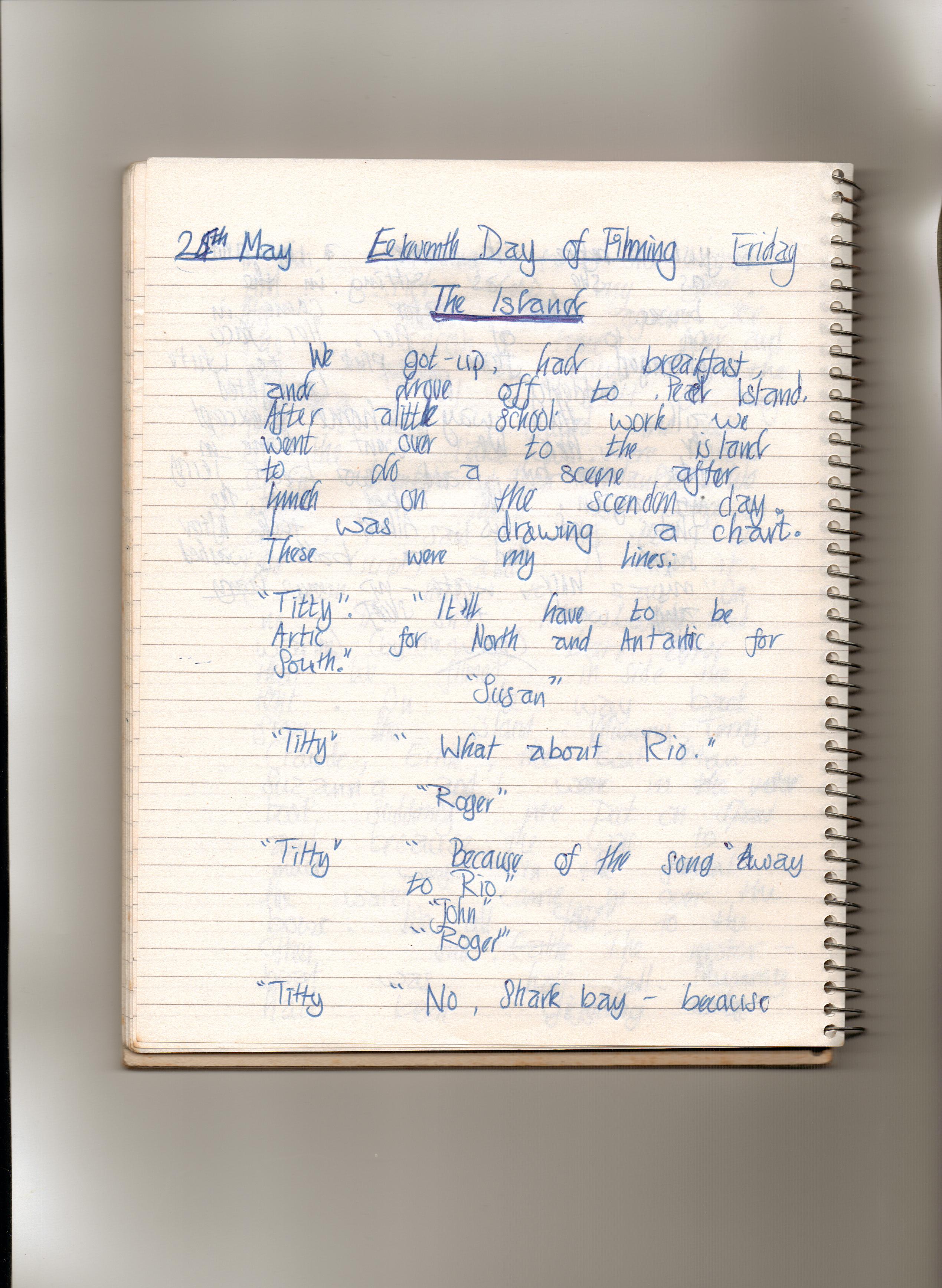 The scene looks so simple on paper. It is the one when the Swallows sail back to Wild Cat Island with the captured Amazon to find Nancy ‘dancing with rage’ and Peggy anxious to get home before breakfast. One page of script.